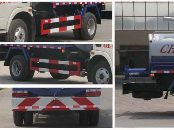 | 整車說明: | 有效容積:5.0立方米,介質(zhì):液態(tài)污物和糞便,0.8噸/立方米;罐體外形尺寸(長×長軸×短軸)(mm)3800×1700×1100。隨底盤選裝駕駛室。防護材料:Q235A碳鋼,連接方式:左右側(cè)面及后下部防護均采用焊接連接,后部防護斷面尺寸(mm):300×50×5,后部防護離地高度(mm):450。 | ||