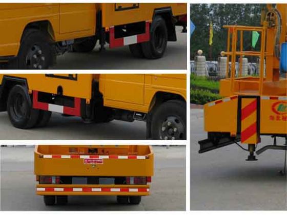 | 整車說明: | 該車吊臂前伸為900mm,作業(yè)高度為14米。選裝二節(jié)工作臂時,作業(yè)高度為12米; 選裝三節(jié)工作臂時,作業(yè)高度為16米;防護材料:Q235A碳鋼,連接方式:左右側(cè)面及后下部防護均采用焊接連接,后部防護斷面尺寸(mm):150×50,后部防護離地高度(mm):400。 | ||