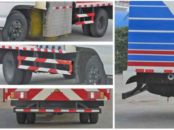 | 整車(chē)說(shuō)明: | 防護(hù)材料:Q235A碳鋼,連接方式:左右側(cè)面及后下部防護(hù)均采用焊接連接,后部防護(hù)斷面尺寸(mm):100×50,后部防護(hù)離地高度(mm):380。隨底盤(pán)選裝駕駛室 | ||