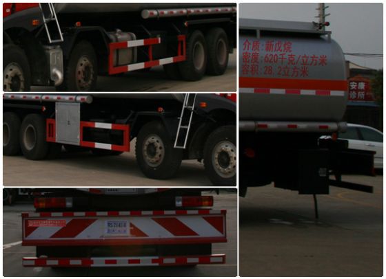 | 整車說明: | 罐體有效容積:28.2立方米,介質(zhì):新戊烷,類項(xiàng)號(hào):3,密度:620千克/立方米,罐體尺寸:長(zhǎng)8500毫米,長(zhǎng)軸2500毫米,短軸1700毫米.側(cè)、后防護(hù)裝置材料材質(zhì):Q235B,側(cè)、后防護(hù)均用螺栓連接,后部防護(hù)裝置斷面尺寸(寬×高)60×100(mm),后部防護(hù)離地高度:540mm.隨底盤選裝駕駛室,選裝罐體帶上護(hù)欄.安裝具有衛(wèi)星定位功能的行駛記錄儀,安裝前輪盤式制動(dòng)器,僅采用底盤子午線輪胎.ABS生產(chǎn)廠家/型號(hào):上海萬(wàn)捷汽車控制系統(tǒng)有限公司/VIE ABS-II.CA6DF4-24E4對(duì)應(yīng)油耗值45.5;BF6M1013-24E4對(duì)應(yīng)油耗值45.7;BF6M1013-26E4對(duì)應(yīng)油耗值45.9 | ||