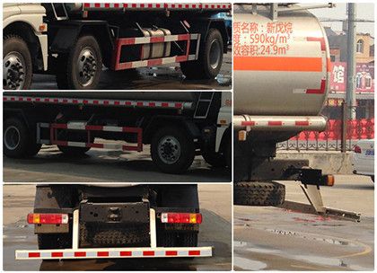 | 整車說(shuō)明: | 罐體有效容積:24.9立方米,介質(zhì):新戊烷,類項(xiàng)號(hào):3,密度:590千克/立方米.罐體尺寸長(zhǎng)7700毫米,長(zhǎng)軸2470毫米,短軸1680毫米.側(cè)、后防護(hù)裝置材料材質(zhì):Q235B,側(cè)、后防護(hù)均用螺栓連接,后部防護(hù)裝置斷面尺寸(寬×高)60×100(mm),后部防護(hù)離地高度:540mm.安裝具有衛(wèi)星定位功能的行駛記錄儀,安裝前輪盤式制動(dòng)器,僅采用底盤子午線輪胎.ABS系統(tǒng)型號(hào):44600XXXX0,3550X-1010;ABS系統(tǒng)生產(chǎn)企業(yè):威伯科汽車控制系統(tǒng)有限公司,東風(fēng)電子科技股份有限公司.發(fā)動(dòng)機(jī)型號(hào)與油耗申報(bào)值的對(duì)應(yīng)關(guān)系為:ISDe210 40/37.23,ISDe245 40/37.31. | ||