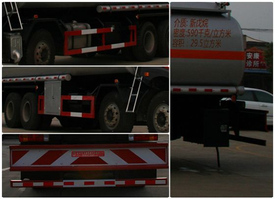 | 整車說明: | 罐體有效容積:29.5立方米,介質(zhì):新戊烷,類項(xiàng)號(hào):3,密度:590千克/立方米.罐體外形尺寸長(zhǎng)9000毫米,長(zhǎng)軸2500毫米,短軸1750毫米.隨底盤選裝駕駛室.選裝尾部帶后爬梯.側(cè)、后防護(hù)裝置材料材質(zhì):Q235B,側(cè)、后防護(hù)均用螺栓連接,后部防護(hù)裝置斷面尺寸(寬×高)60×100(mm),后部防護(hù)離地高度:540mm.安裝具有衛(wèi)星定位功能的行駛記錄儀,安裝前輪盤式制動(dòng)器,僅采用底盤子午線輪胎.ABS生產(chǎn)廠家:上海萬捷汽車控制系統(tǒng)有限公司,ABS型號(hào): VIE ABS-II.油耗申報(bào)值45.1,45.4,45.1,45.5,45.3,45.5,45.7分別對(duì)應(yīng)CA6DF4-24E4,CA6DL1-26E4,CA6DK1-24E4,CA6DK1-26E4,BF6M1013-24E4,BF6M1013-26E4,BF6M1013-28E4發(fā)動(dòng)機(jī). | ||