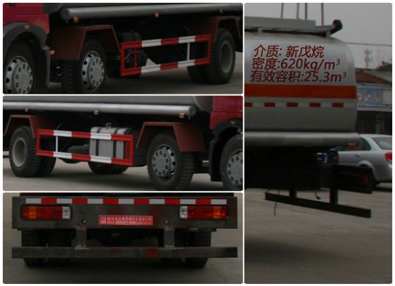 | 整車說明: | 罐體有效容積:25.3立方米,介質(zhì):新戊烷,類項(xiàng)號(hào):3,密度:620千克/立方米.軸距/整車長/后懸/罐體外形尺寸(長×長軸×短軸)的對(duì)應(yīng)關(guān)系為:1800+4200/10200/2770/7350/2500/1700;1800+4800/11000/2970/8150/2350/1635.隨底盤選裝駕駛室.側(cè)、后防護(hù)裝置材料材質(zhì):Q235B,側(cè)、后防護(hù)均用螺栓連接,后部防護(hù)裝置斷面尺寸(寬×高)60×100(mm),后部防護(hù)離地高度:540mm.安裝具有衛(wèi)星定位功能的行駛記錄儀,安裝前輪盤式制動(dòng)器,僅采用底盤子午線輪胎.ABS系統(tǒng)型號(hào)為4460046300,生產(chǎn)企業(yè)為威伯科汽車控制系統(tǒng)(中國)有限公司.發(fā)動(dòng)機(jī)MC05.21-40,MC07.21-40,MC07.24-40對(duì)應(yīng)油耗申報(bào)值分別是34.2,34.6,34.9L/100km. | ||