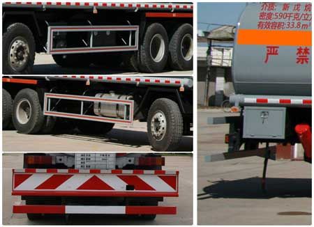 | 整車說明: | 罐體有效容積:33.8立方米,介質(zhì):新戊烷,類項號:3,密度:590千克/立方米,罐體尺寸:長9150毫米,長軸2500毫米,短軸1950毫米.隨底盤選裝駕駛室.側(cè)、后防護裝置材料材質(zhì):Q235B,側(cè)、后防護均用螺栓連接,后部防護裝置斷面尺寸(寬×高)60×100(mm),后部防護離地高度:540mm.安裝具有衛(wèi)星定位功能的行駛記錄儀,安裝前輪盤式制動器,僅采用底盤子午線輪胎.,ABS系統(tǒng)生產(chǎn)廠家1:浙江萬安科技股份有限公司,型號:VIE ABS-Ⅱ,ABS系統(tǒng)生產(chǎn)廠家2:WABCO,型號:4460043200. | ||